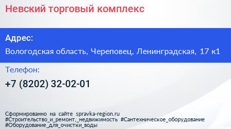 Невский, торговый комплекс по адресу Вологодская область, Череповец, Ленинградская, 17 к1 в дальнейшем Организация, размещена в следующих категориях:
