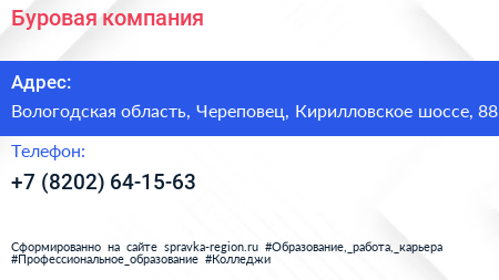 Буровая компания по адресу Вологодская область, Череповец, Кирилловское шоссе, 88 в дальнейшем Организация, размещена в следующих категориях: