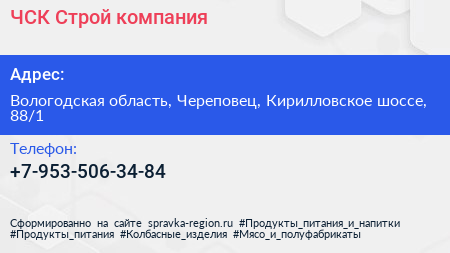 ЧСК-Строй, компания по адресу Вологодская область, Череповец, Кирилловское шоссе, 88/1 в дальнейшем Организация, размещена в следующих категориях: