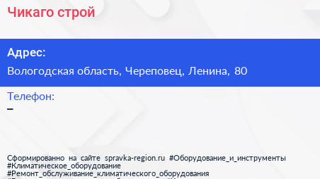 Чикаго строй по адресу Вологодская область, Череповец, Ленина, 80 в дальнейшем Организация, размещена в следующих категориях: