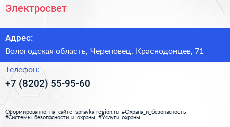 Электросвет по адресу Вологодская область, Череповец, Краснодонцев, 71 в дальнейшем Организация, размещена в следующих категориях: