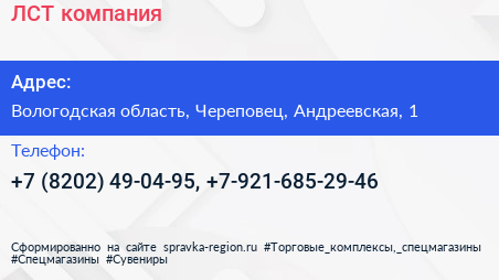 ЛСТ, компания по адресу Вологодская область, Череповец, Андреевская, 1 в дальнейшем Организация, размещена в следующих категориях: