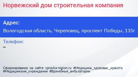 Норвежский дом, строительная компания по адресу Вологодская область, Череповец, проспект Победы, 135г в дальнейшем Организация, размещена в следующих категориях: