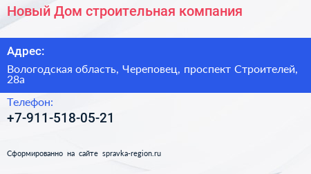 Новый Дом, строительная компания по адресу Вологодская область, Череповец, проспект Строителей, 28а в дальнейшем Организация, размещена в следующих категориях: