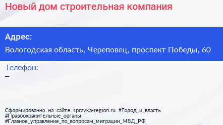 Новый дом, строительная компания по адресу Вологодская область, Череповец, проспект Победы, 60 в дальнейшем Организация, размещена в следующих категориях:
