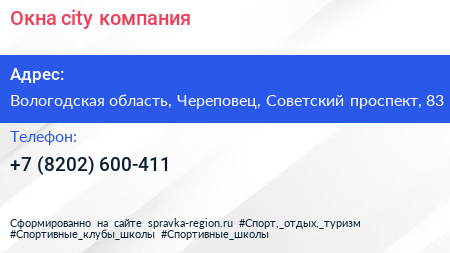 Окна city, компания по адресу Вологодская область, Череповец, Советский проспект, 83 в дальнейшем Организация, размещена в следующих категориях: