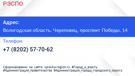 РЭСПО по адресу Вологодская область, Череповец, проспект Победы, 14 в дальнейшем Организация, размещена в следующих категориях: