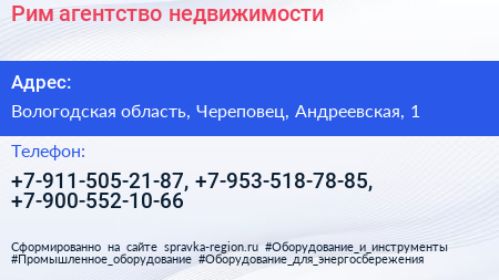 Рим, агентство недвижимости по адресу Вологодская область, Череповец, Андреевская, 1 в дальнейшем Организация, размещена в следующих категориях: