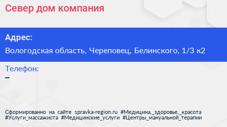 Север-дом, компания по адресу Вологодская область, Череповец, Белинского, 1/3 к2 в дальнейшем Организация, размещена в следующих категориях:
