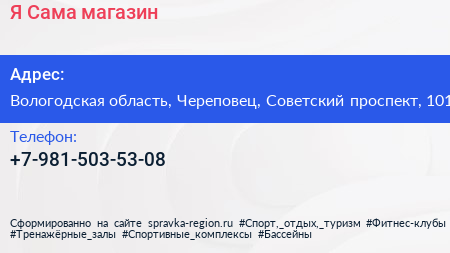 Я Сама, магазин по адресу Вологодская область, Череповец, Советский проспект, 101 в дальнейшем Организация, размещена в следующих категориях: