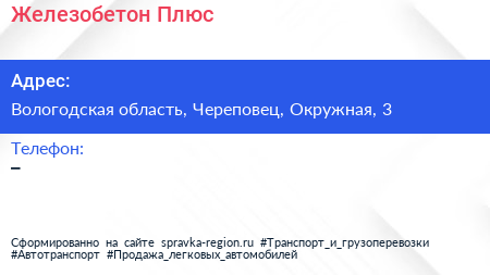 Железобетон Плюс по адресу Вологодская область, Череповец, Окружная, 3 в дальнейшем Организация, размещена в следующих категориях: