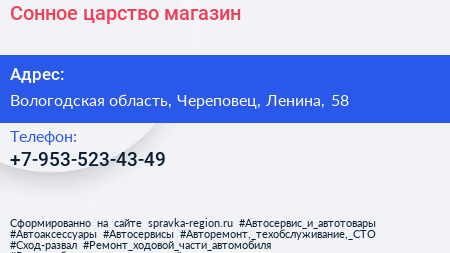 Сонное царство, магазин по адресу Вологодская область, Череповец, Ленина, 58 в дальнейшем Организация, размещена в следующих категориях: