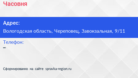 Часовня по адресу Вологодская область, Череповец, Завокзальная, 9/11 в дальнейшем Организация, размещена в следующих категориях: