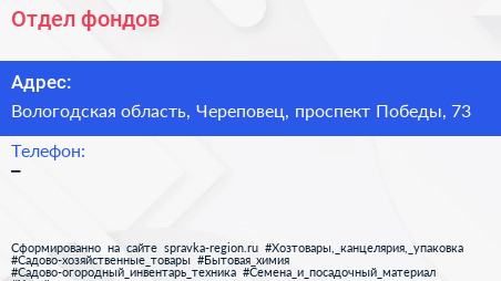 Отдел фондов по адресу Вологодская область, Череповец, проспект Победы, 73 в дальнейшем Организация, размещена в следующих категориях: