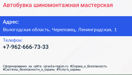 Автобувка, шиномонтажная мастерская по адресу Вологодская область, Череповец, Ленинградская, 1 в дальнейшем Организация, размещена в следующих категориях: