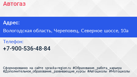 Автогаз по адресу Вологодская область, Череповец, Северное шоссе, 10а в дальнейшем Организация, размещена в следующих категориях: