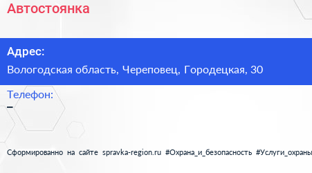 Автостоянка по адресу Вологодская область, Череповец, Городецкая, 30 в дальнейшем Организация, размещена в следующих категориях: