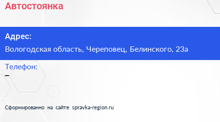 Автостоянка по адресу Вологодская область, Череповец, Белинского, 23а в дальнейшем Организация, размещена в следующих категориях: