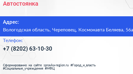 Автостоянка по адресу Вологодская область, Череповец, Космонавта Беляева, 56а в дальнейшем Организация, размещена в следующих категориях: