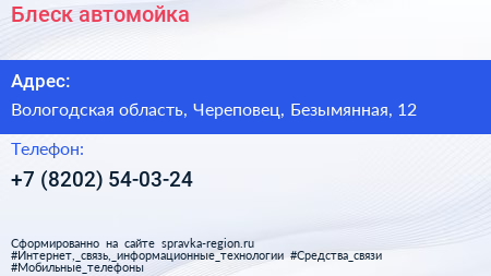 Блеск, автомойка по адресу Вологодская область, Череповец, Безымянная, 12 в дальнейшем Организация, размещена в следующих категориях: