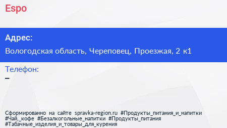 Espo по адресу Вологодская область, Череповец, Проезжая, 2 к1 в дальнейшем Организация, размещена в следующих категориях:
