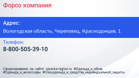 Форсо, компания по адресу Вологодская область, Череповец, Краснодонцев, 1 в дальнейшем Организация, размещена в следующих категориях: