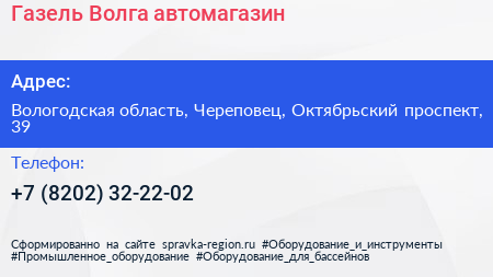 Газель-Волга, автомагазин по адресу Вологодская область, Череповец, Октябрьский проспект, 39 в дальнейшем Организация, размещена в следующих категориях: