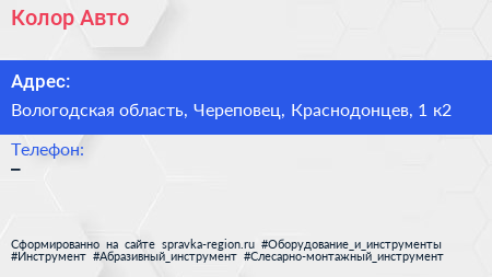 Колор-Авто по адресу Вологодская область, Череповец, Краснодонцев, 1 к2 в дальнейшем Организация, размещена в следующих категориях: