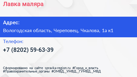 Лавка маляра по адресу Вологодская область, Череповец, Чкалова, 1а к1 в дальнейшем Организация, размещена в следующих категориях: