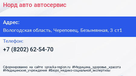 Норд-авто, автосервис по адресу Вологодская область, Череповец, Безымянная, 3 ст1 в дальнейшем Организация, размещена в следующих категориях: