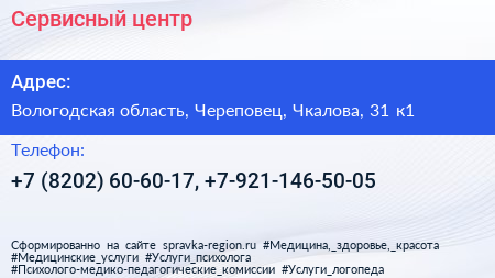 Сервисный центр по адресу Вологодская область, Череповец, Чкалова, 31 к1 в дальнейшем Организация, размещена в следующих категориях:
