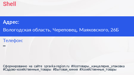 Shell по адресу Вологодская область, Череповец, Маяковского, 26Б в дальнейшем Организация, размещена в следующих категориях: