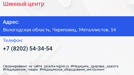 Шинный центр по адресу Вологодская область, Череповец, Металлистов, 14 в дальнейшем Организация, размещена в следующих категориях:
