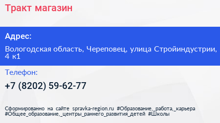Тракт, магазин по адресу Вологодская область, Череповец, улица Стройиндустрии, 4 к1 в дальнейшем Организация, размещена в следующих категориях:
