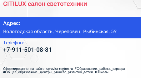 CITILUX, салон светотехники по адресу Вологодская область, Череповец, Рыбинская, 59 в дальнейшем Организация, размещена в следующих категориях: