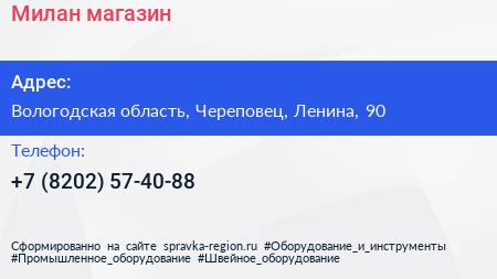 Милан, магазин по адресу Вологодская область, Череповец, Ленина, 90 в дальнейшем Организация, размещена в следующих категориях: