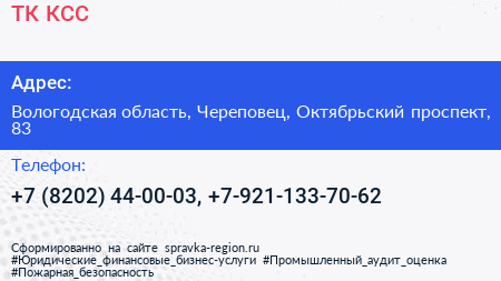 ТК КСС по адресу Вологодская область, Череповец, Октябрьский проспект, 83 в дальнейшем Организация, размещена в следующих категориях: