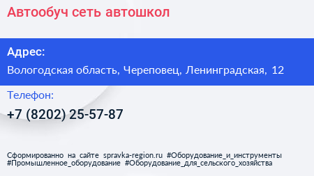 Автообуч, сеть автошкол по адресу Вологодская область, Череповец, Ленинградская, 12 в дальнейшем Организация, размещена в следующих категориях: