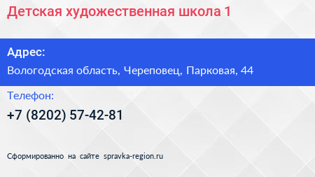 Детская художественная школа №1 по адресу Вологодская область, Череповец, Парковая, 44 в дальнейшем Организация, размещена в следующих категориях: