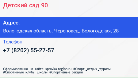Детский сад №90 по адресу Вологодская область, Череповец, Вологодская, 28 в дальнейшем Организация, размещена в следующих категориях: