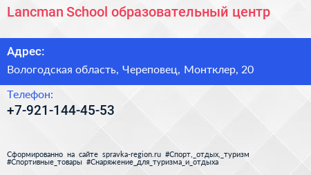 Lancman School, образовательный центр по адресу Вологодская область, Череповец, Монтклер, 20 в дальнейшем Организация, размещена в следующих категориях: