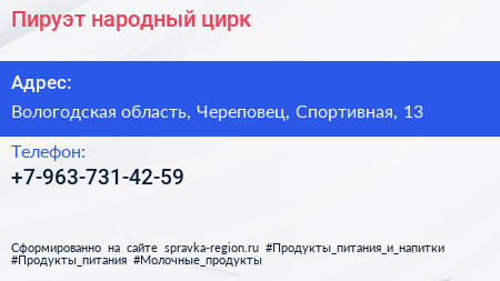 Пируэт, народный цирк по адресу Вологодская область, Череповец, Спортивная, 13 в дальнейшем Организация, размещена в следующих категориях: