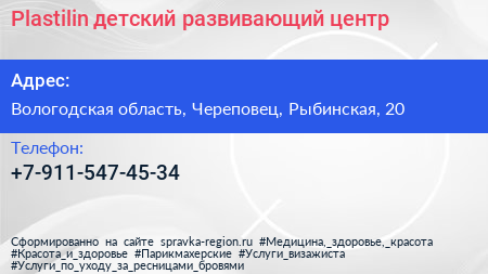 Plastilin, детский развивающий центр по адресу Вологодская область, Череповец, Рыбинская, 20 в дальнейшем Организация, размещена в следующих категориях: