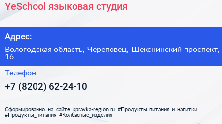 YeSchool, языковая студия по адресу Вологодская область, Череповец, Шекснинский проспект, 16 в дальнейшем Организация, размещена в следующих категориях: