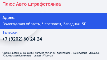 Плюс Авто, штрафстоянка по адресу Вологодская область, Череповец, Западная, 5Б в дальнейшем Организация, размещена в следующих категориях: