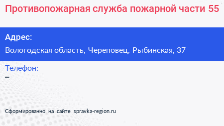Противопожарная служба пожарной части №55 по адресу Вологодская область, Череповец, Рыбинская, 37 в дальнейшем Организация, размещена в следующих категориях: