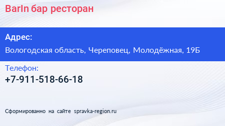 BarIn, бар-ресторан по адресу Вологодская область, Череповец, Молодёжная, 19Б в дальнейшем Организация, размещена в следующих категориях: