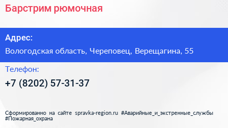 Барстрим, рюмочная по адресу Вологодская область, Череповец, Верещагина, 55 в дальнейшем Организация, размещена в следующих категориях: