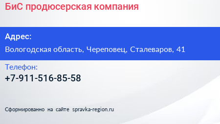 БиС, продюсерская компания по адресу Вологодская область, Череповец, Сталеваров, 41 в дальнейшем Организация, размещена в следующих категориях:
