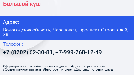 Большой куш по адресу Вологодская область, Череповец, проспект Строителей, 28 в дальнейшем Организация, размещена в следующих категориях: